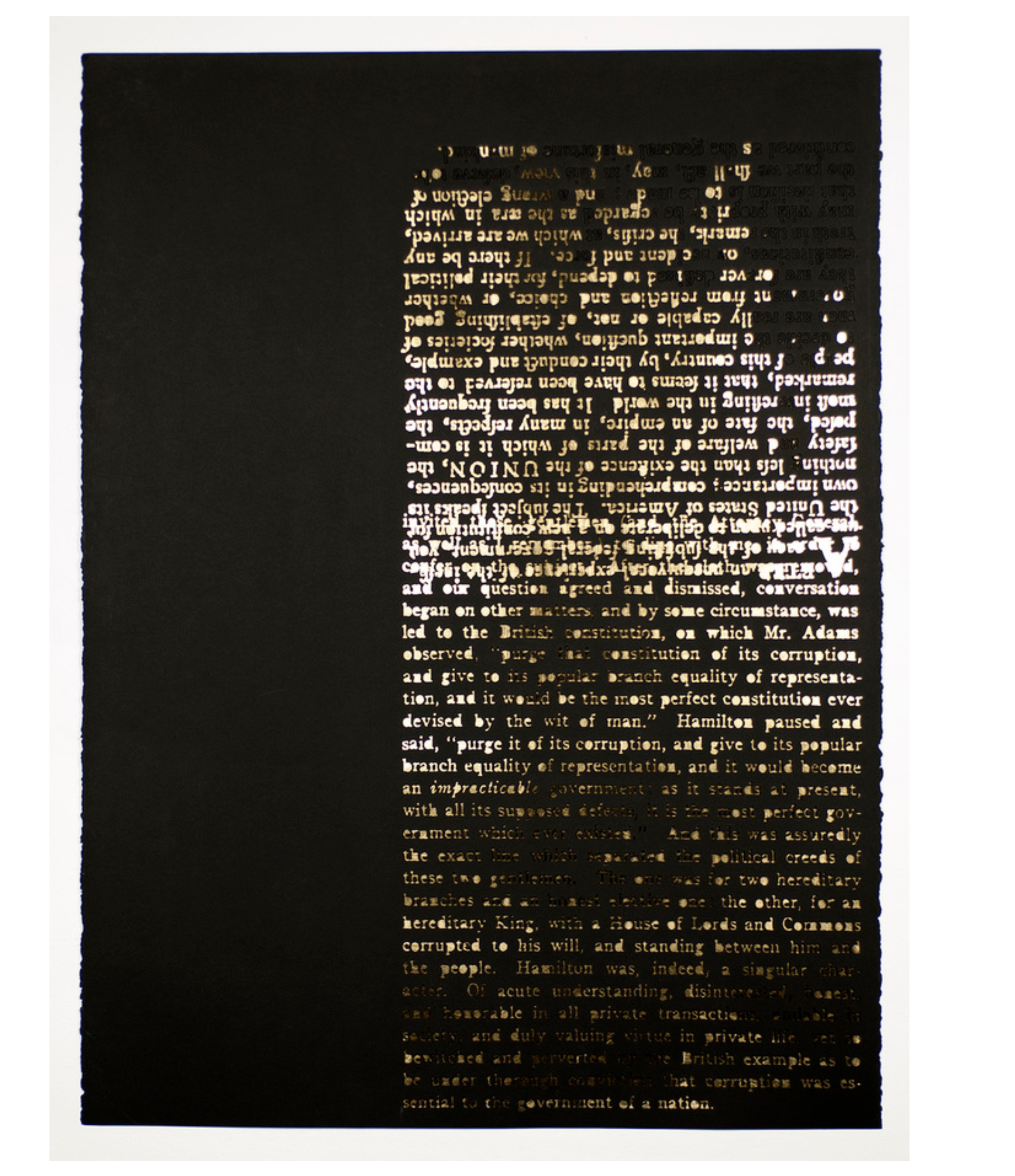 Originally a graphic designer working “on communicating economically,” her artwork evolved to “push the idea of economy to its limits, to the point of impeding communication and questioning how much must be left behind to retain the narrative” (see https://www.donnaruffart.com/statement).