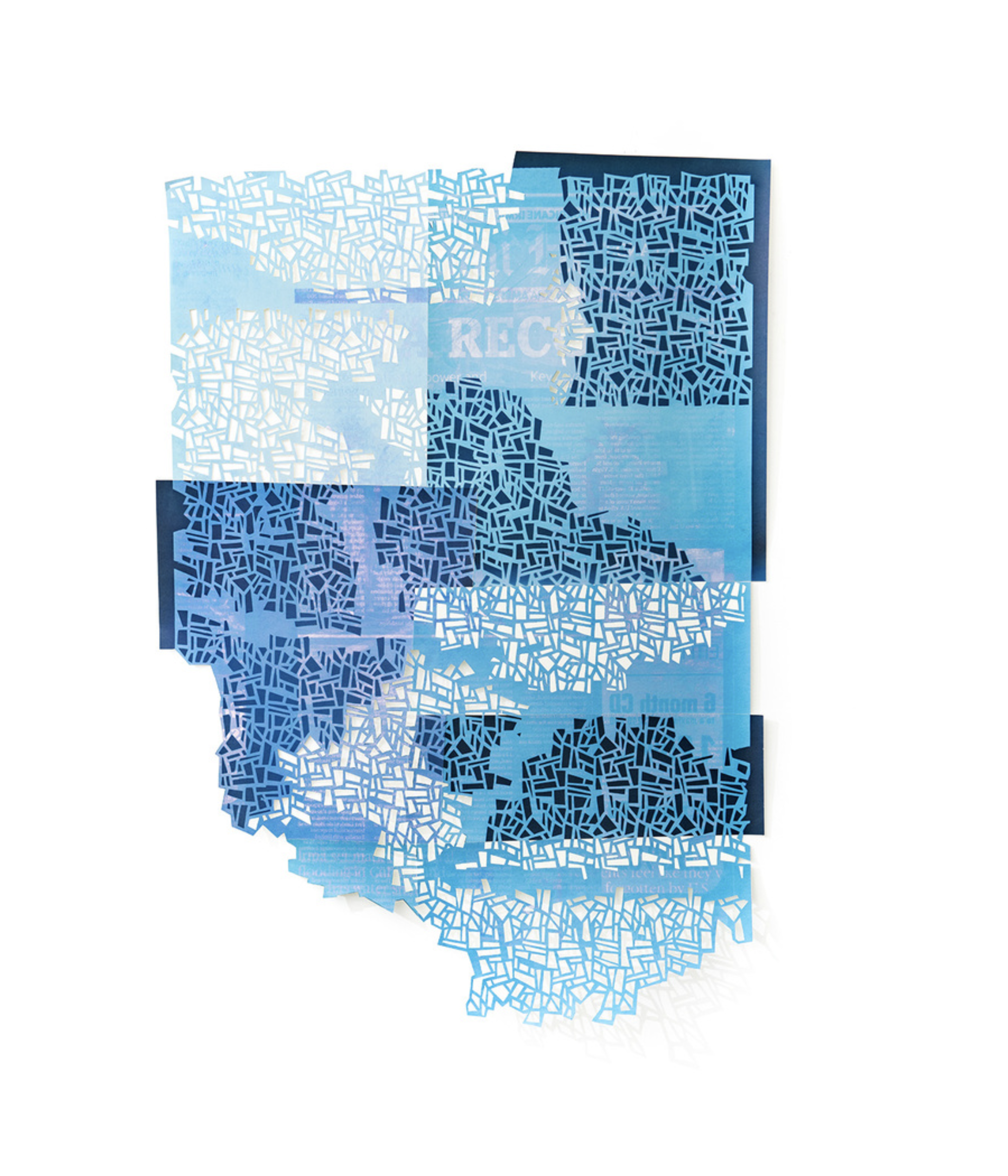 Working with newspapers and cutting patterns from vanishing print editions, Ruff aims to create a dialogue of positive and negative space to determine what image and text remains for the viewer to engage with. The lost and found information contrasting to its aesthetic beauty reflects a dissonance that today Ruff uses to capture the socialcultural-political impact of violence in our times.